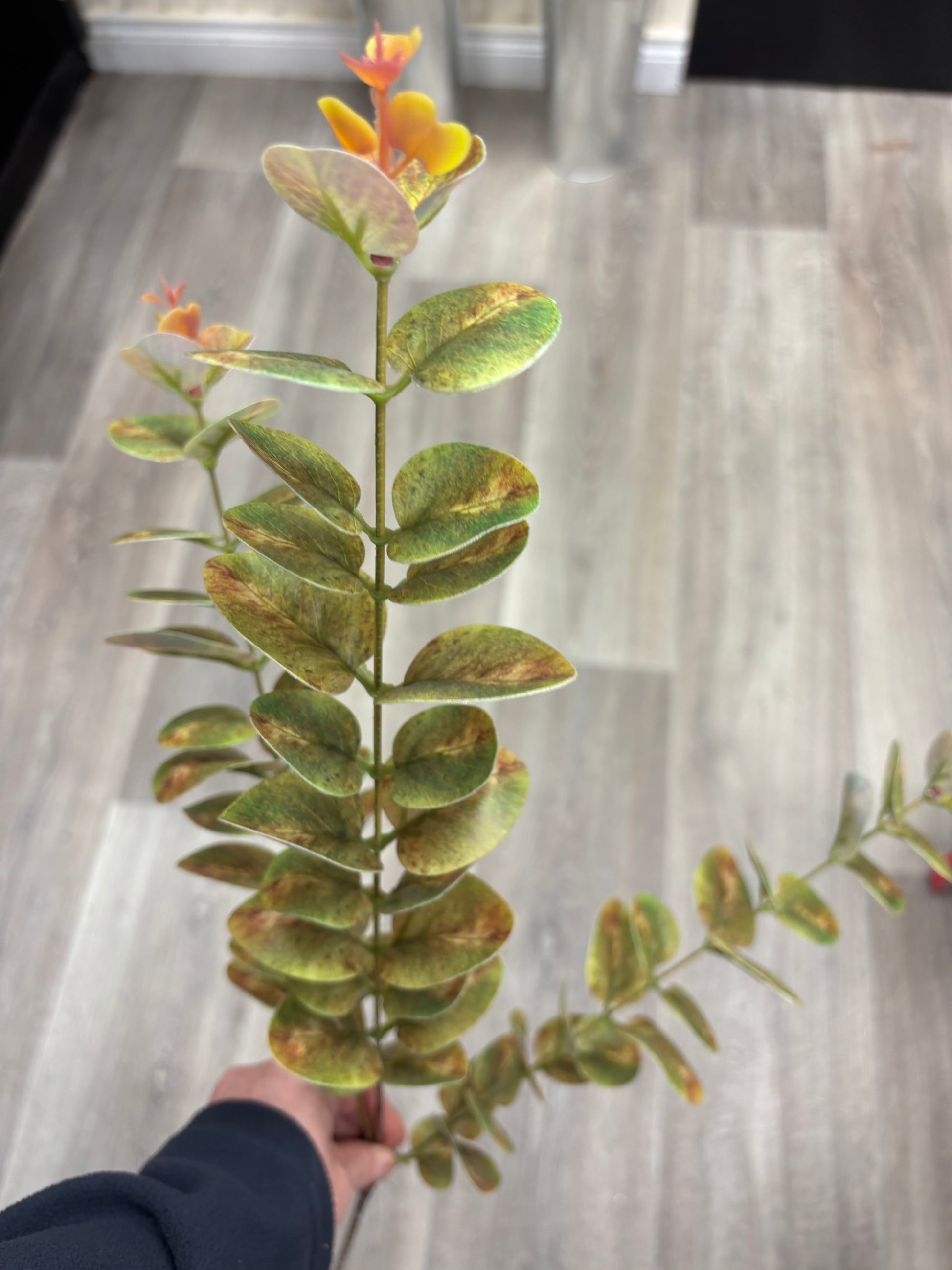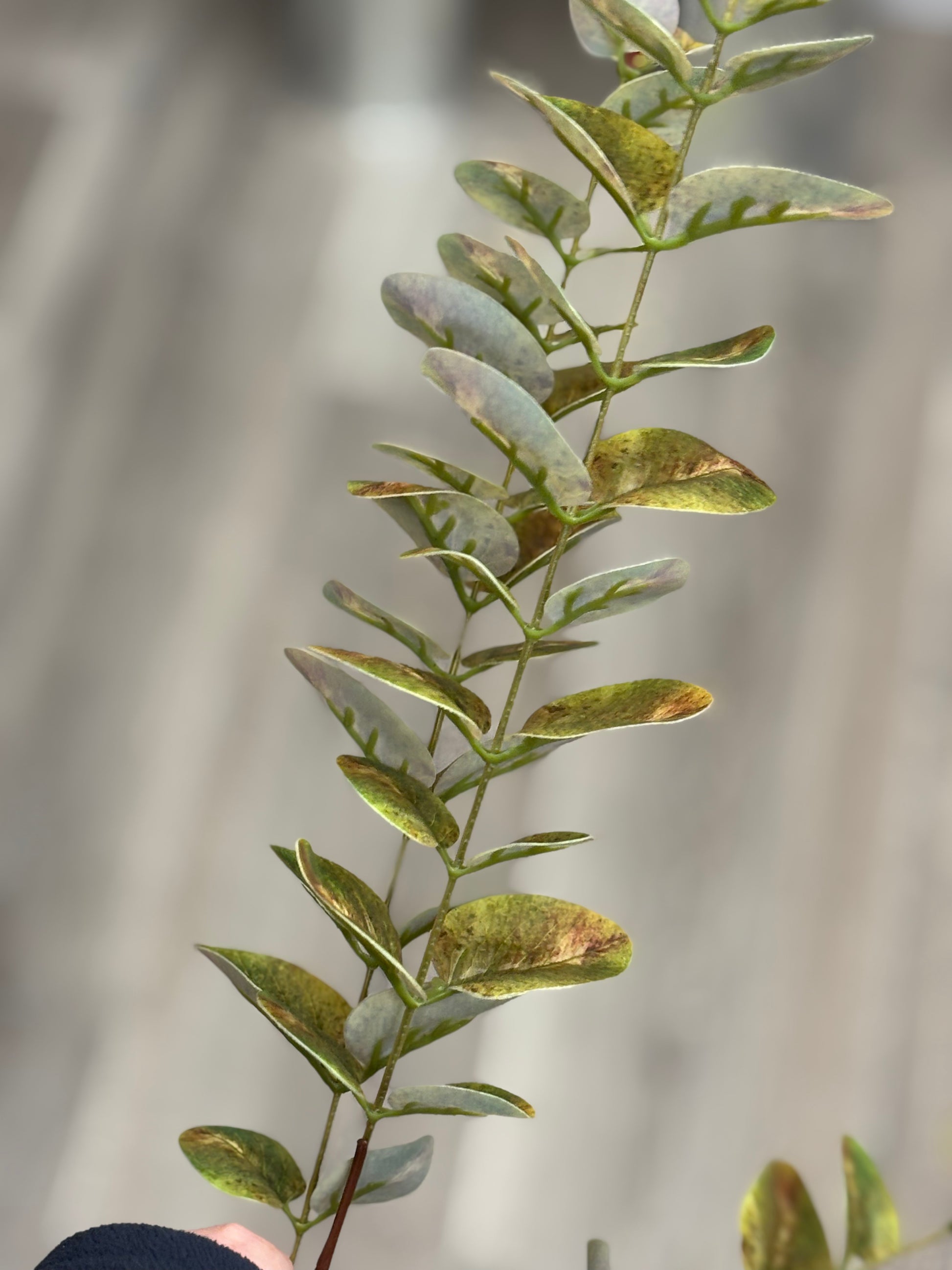 Add a touch of rustic charm and warm, earthy colors to your home with our stunning Faux Variegated Autumn Eucalyptus Stem. This premium artificial spray captures the look of eucalyptus transitioning through the seasons, offering a vibrant alternative to standard green foliage.