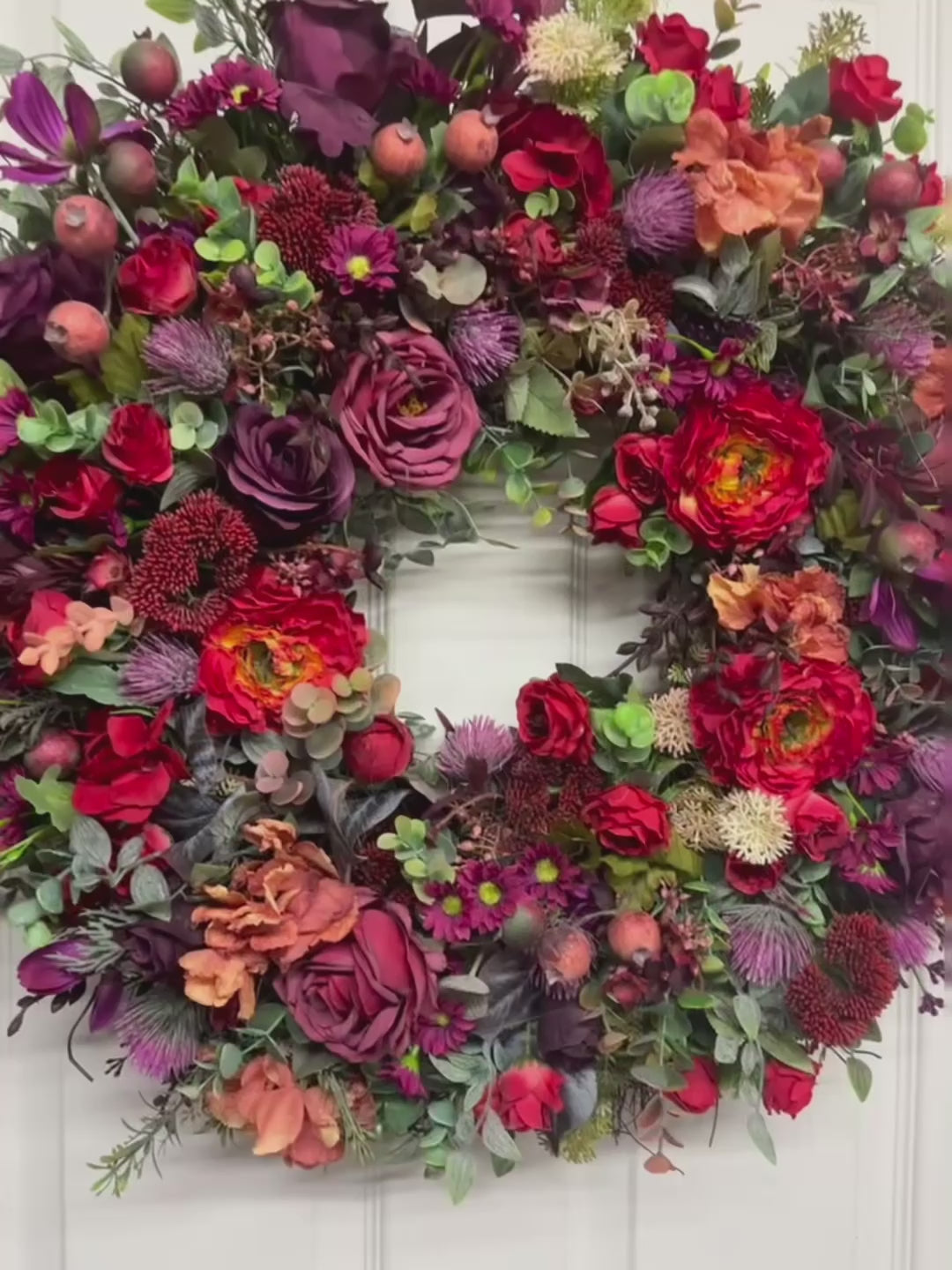 Each detail is carefully arranged to capture the beauty of the changing seasons — a timeless piece that adds elegance and charm to any entrance or interior space. Whether displayed on your front door, above a mantel, or as a centrepiece, this wreath is sure to make a lasting impression.